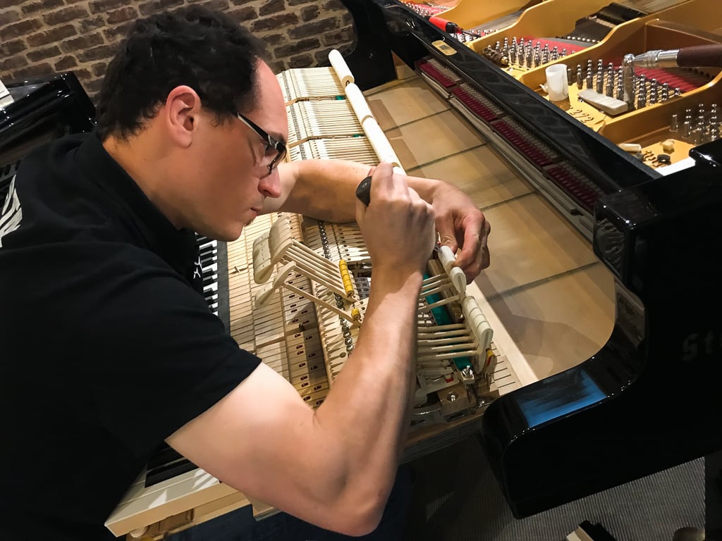 En passant par nos ateliers, l’intégralité de nos instruments d’occasion sont réglés, accordés et révisés, voire restaurés si nécessaire. Sous l’oeil vigilant de notre directeur technique Quentin CODEVELLE, l’un des 3 détenteurs Français du plus haut niveau de certification Yamaha, nos artisans opèrent chaque jour pour vous fournir la meilleure expérience pianistique. C’est d’ailleurs cette expertise métier qui nous permet de garantir nos pianos 10 ans, et d’arborer fièrement les labels Entreprise du Patrimoine Vivant et Maître Artisans en Métiers d’Art