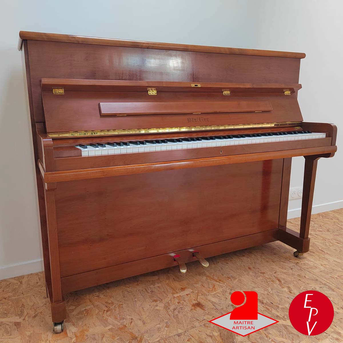 Les pianos Pfeiffer des années 80 comptent parmi les plus beaux instruments de la facture allemande contemporaine. Ce modèle 118 T en merisier, construit en 1983, conjugue finesse esthétique, précision mécanique à un son riche et puissant. Grâce à une restauration complète de sa mécanique (marteaux Renner neufs), il a retrouvé toutes ses belles qualités d’origine. Un piano haut de gamme rare, idéal pour qui recherche un instrument expressif et durable.