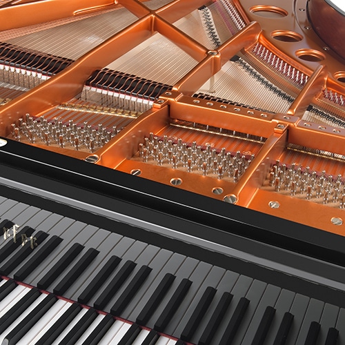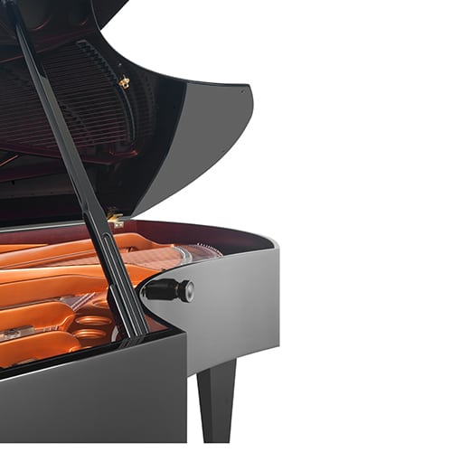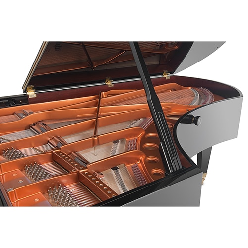 Plus que sur tout autre modèle, le son Bösendorfer, cuivré, puissant et riche se révèle sur le 225. Tout est légendaire sur ce piano, le nombre de 92 touches (4 notes additionnelles dans les graves), sa forme unique à angles et volutes et sa splendide puissance.